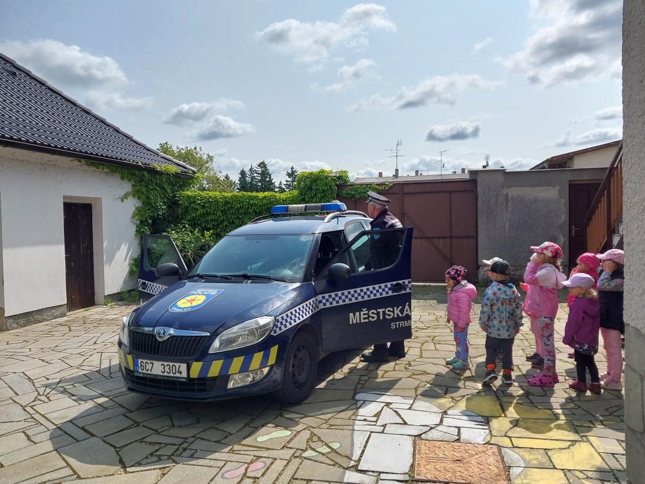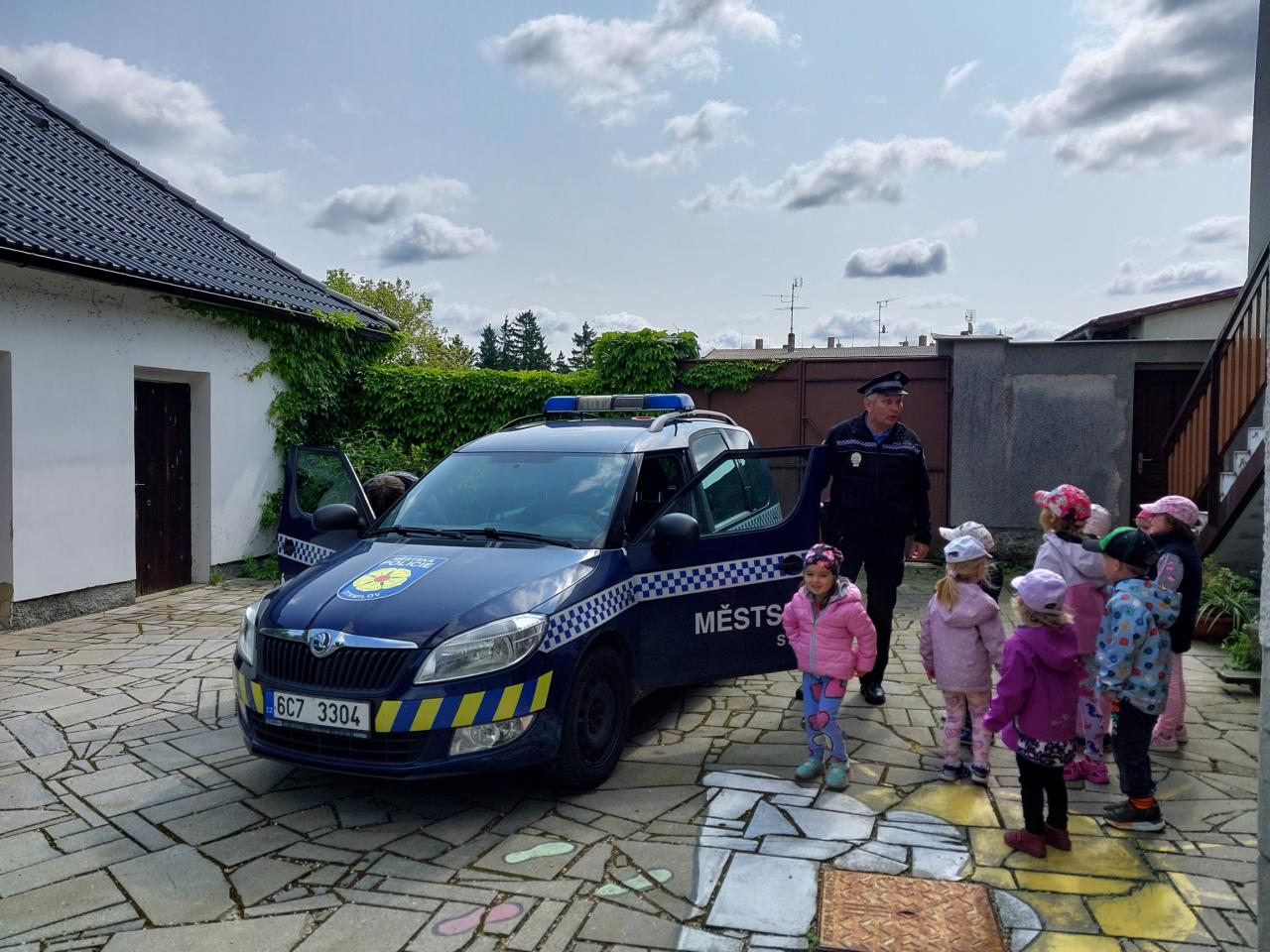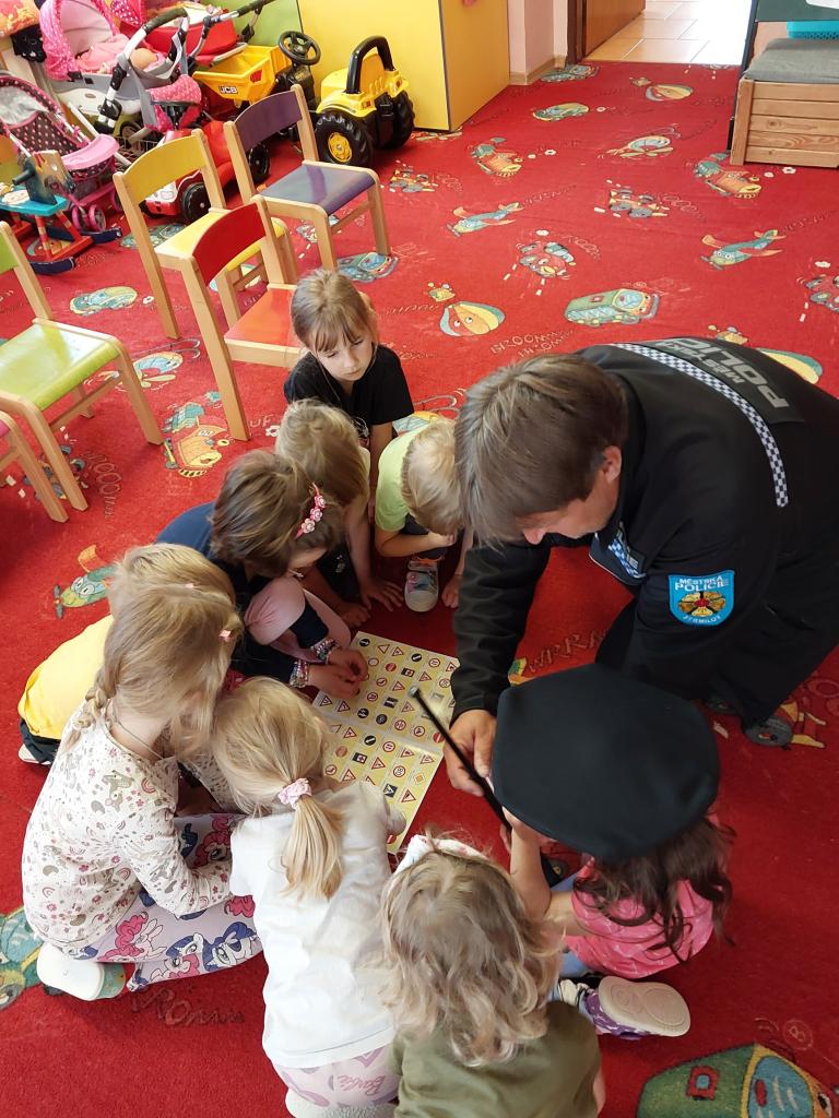 V pondělí 9. 6. 2025 nás ve školce navštívili policisté ze Strmilova, pan Séč a pan Kučera. Povídali si s dětmi o práci policistů, zábavnou formou poznávali dopravní značky, řešili různé dopravní situace a nakonec si děti mohly prohlédnout policejní auto.