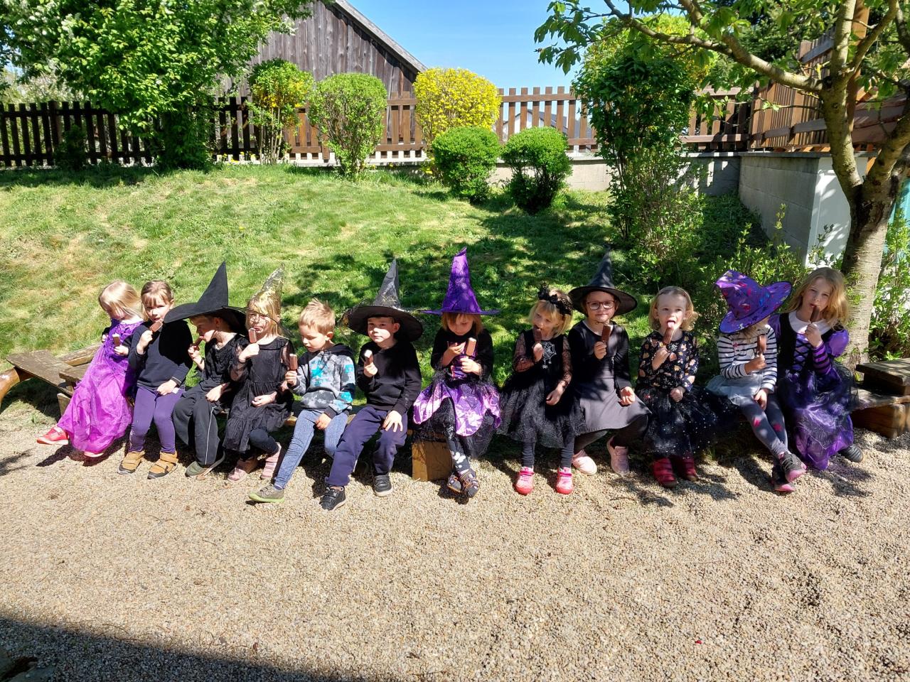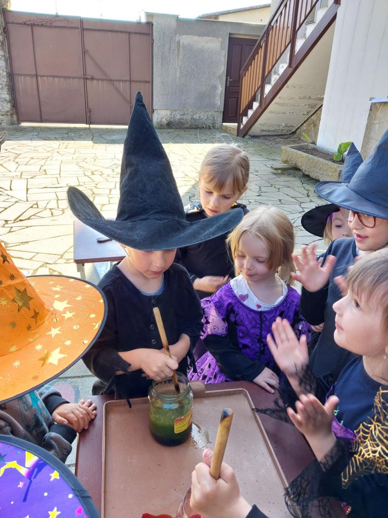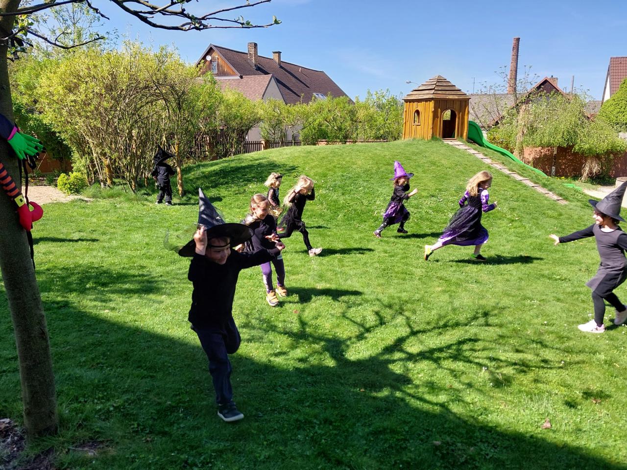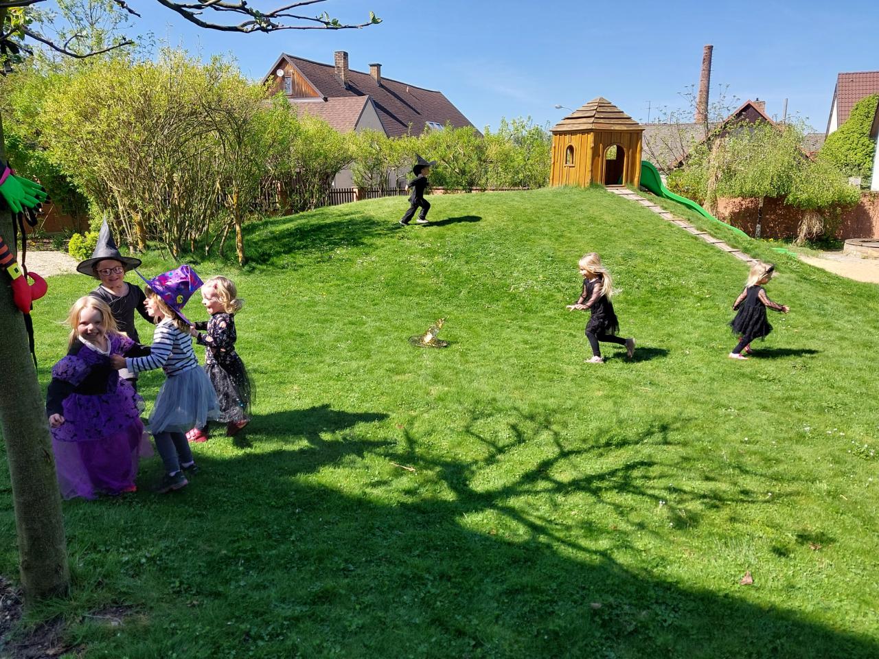 Ve středu 30. 4. 2025 jsme s dětmi oslavili „tradici čarodějnic.“ Děti se oblékly do kostýmů čarodějů a čarodějnic, pochutnaly si na opečených buřtech, vařily kouzelné lektvary, závodily v letu na košťatech a čarovaly. Nakonec si děti pochutnaly na zmrzlině a dostaly diplom za čarodějnický kostým.