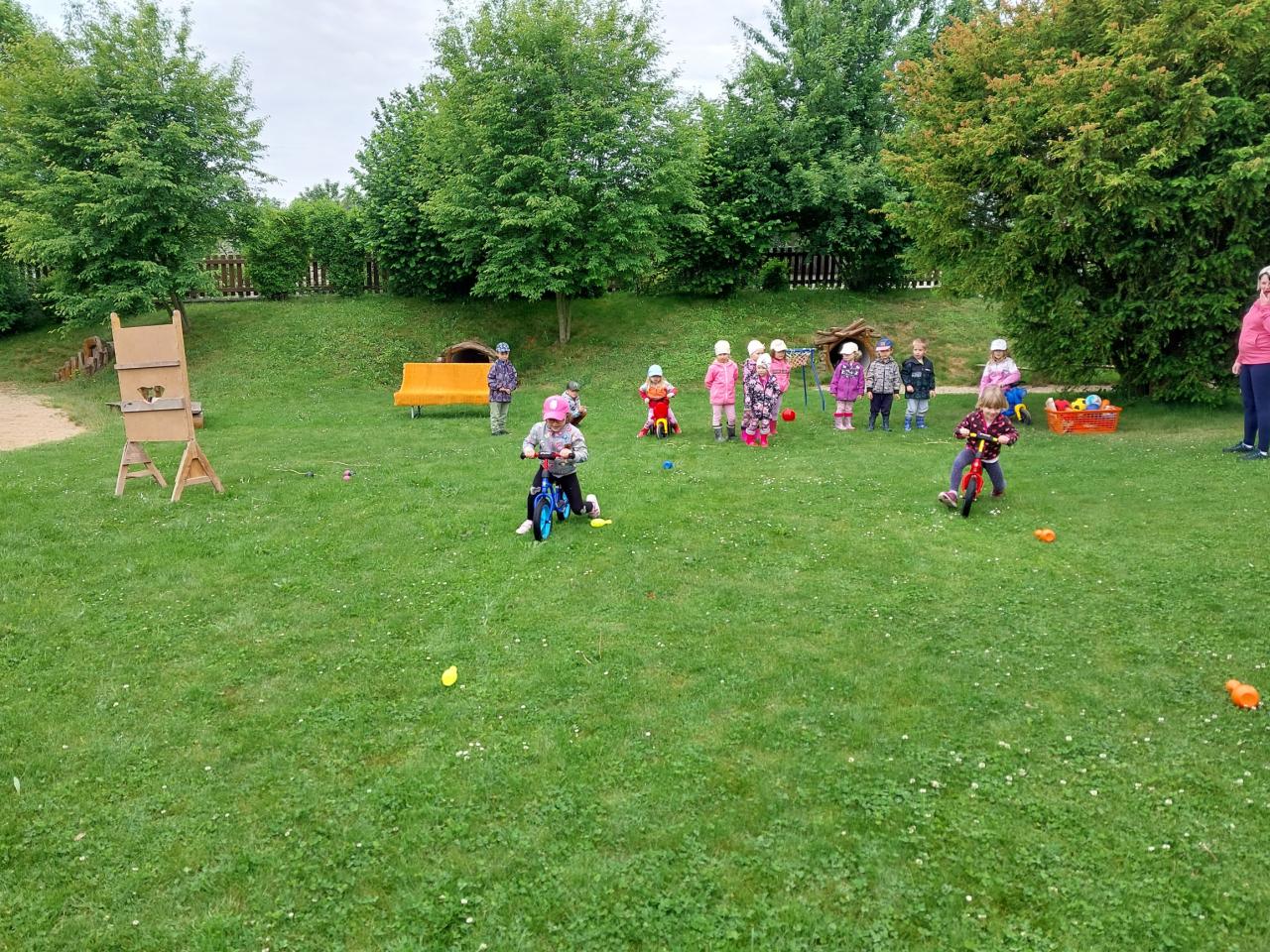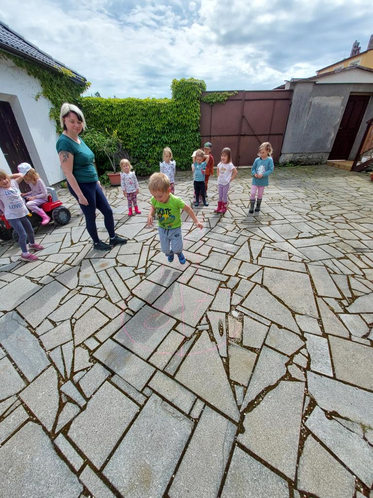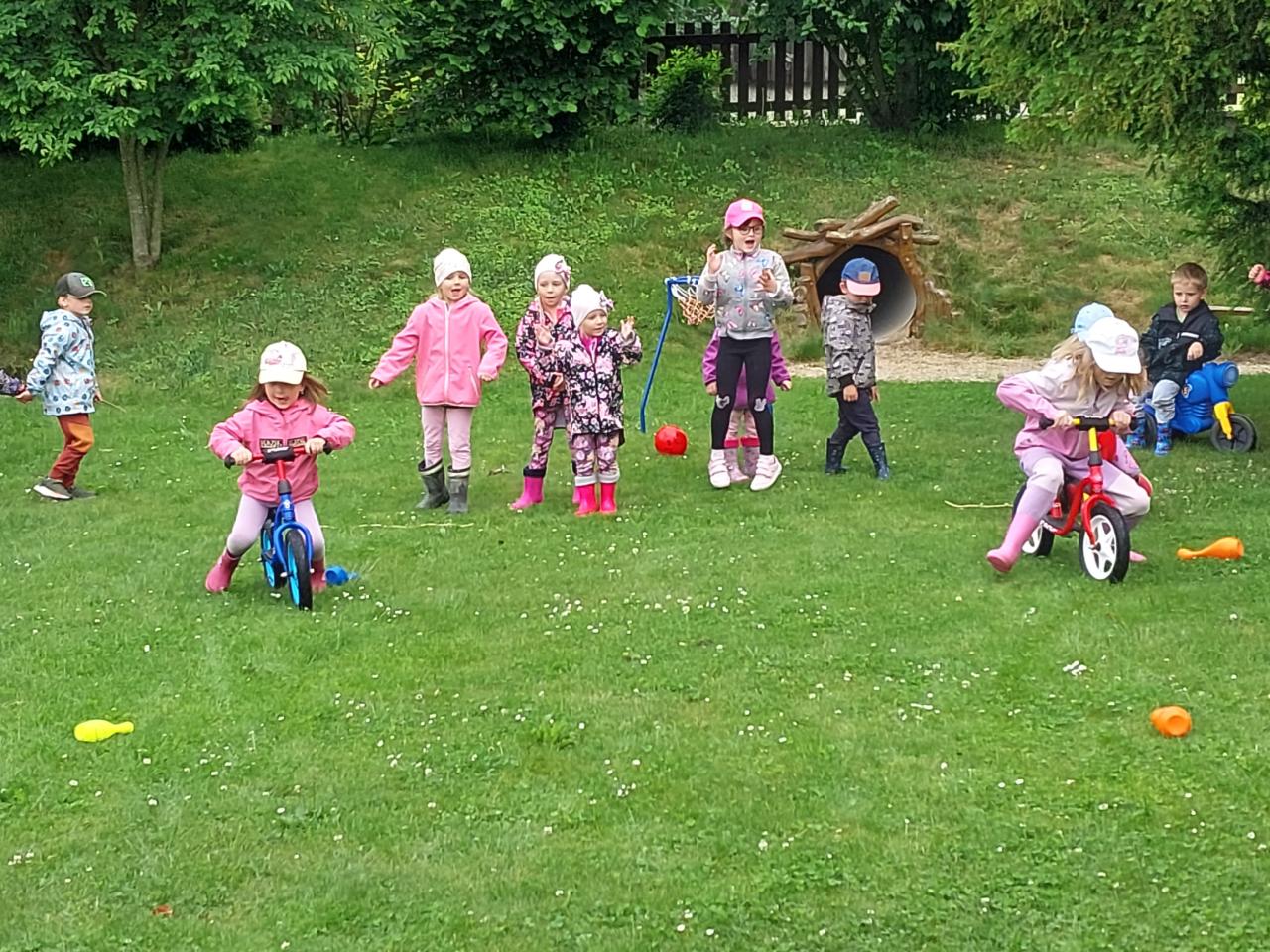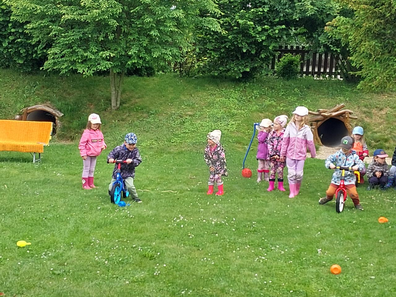 V pondělí 2. 6. 2025 jsme oslavili na školní zahradě Den dětí soutěžemi - děti jezdily na odrážedlech mezi kuželkami, skákaly panáka, kreslily kytičky na chodník... a nakonec dostaly za odměnu sušenku, nanuka a medaily.