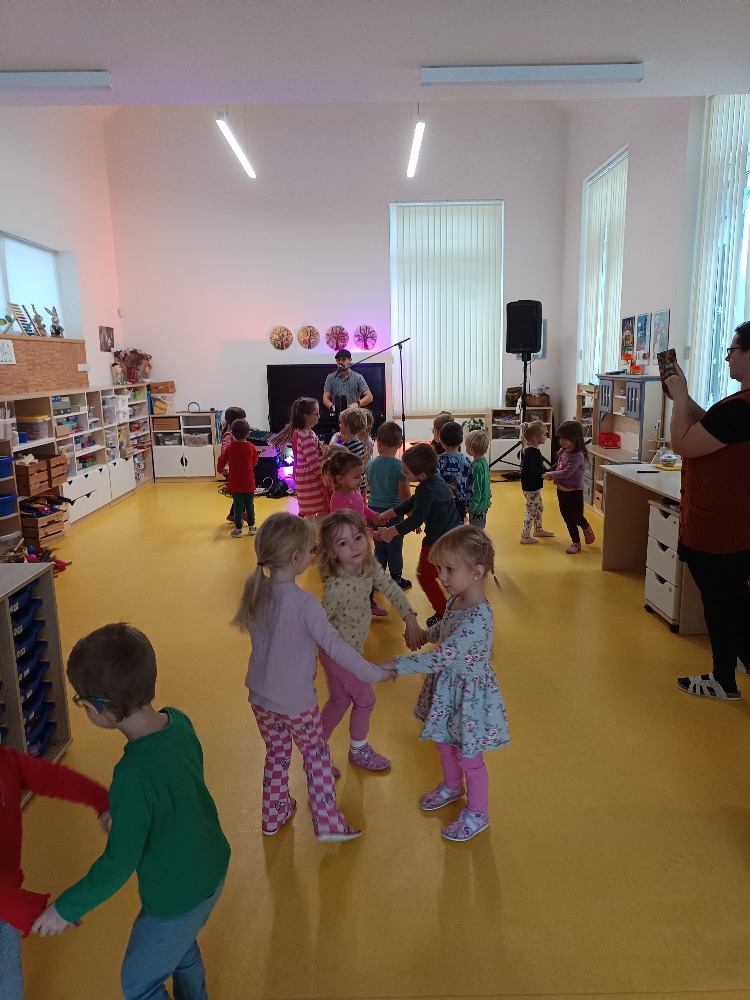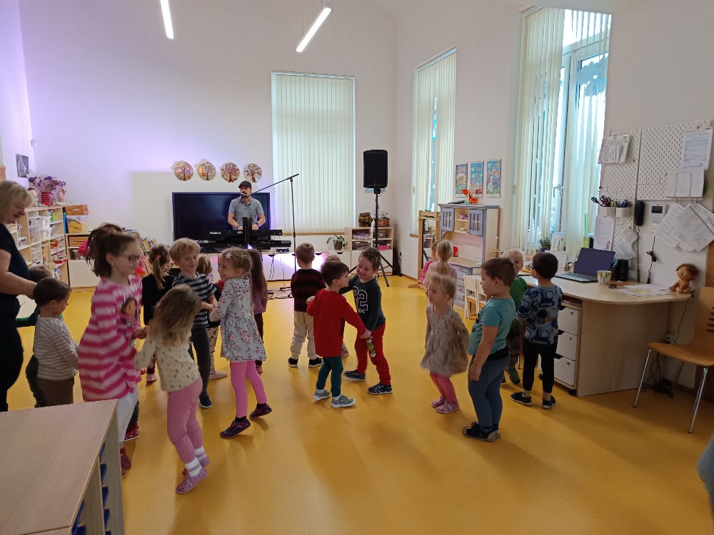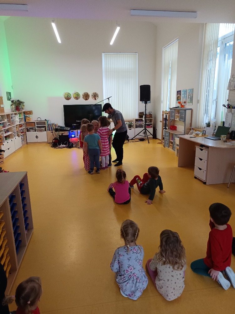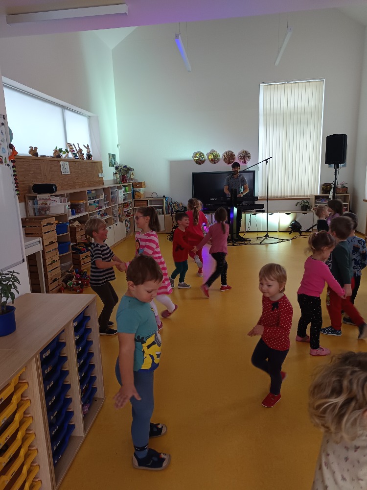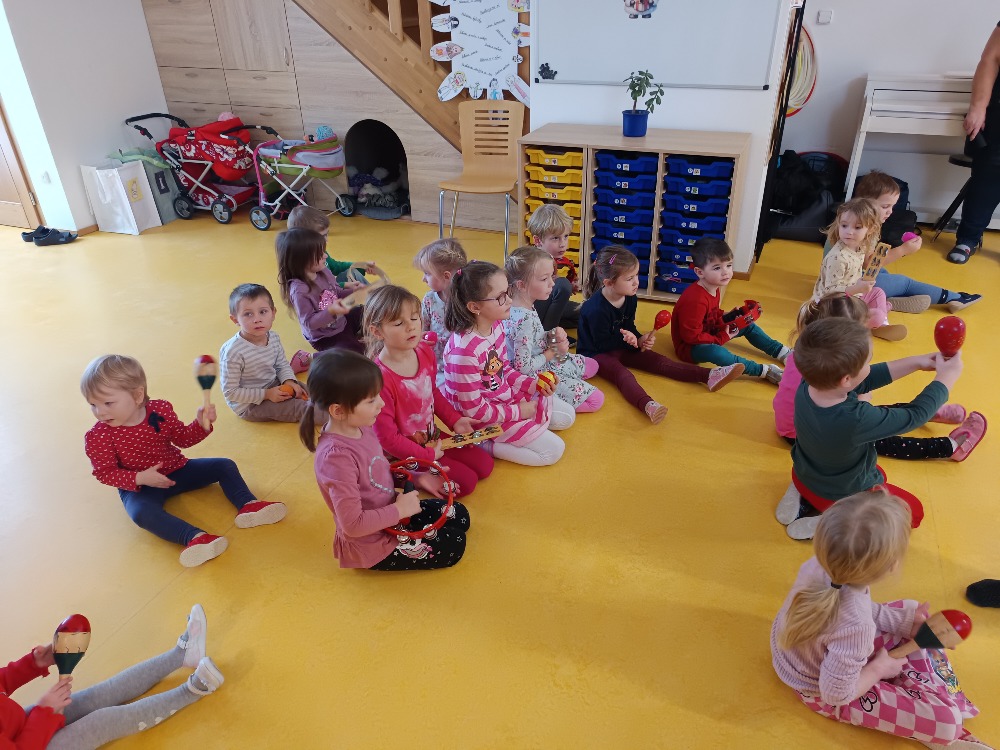 Dnes 9.1.2026 jsme byli pozváni do MŠ Strmilov na hudební program. Děti si vyzkoušely některé hudební nástroje, poznávaly nástroje podle zvuku, zpívaly a tančily.