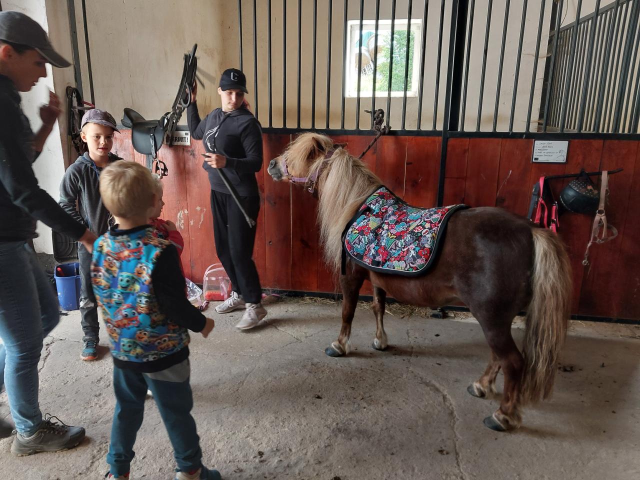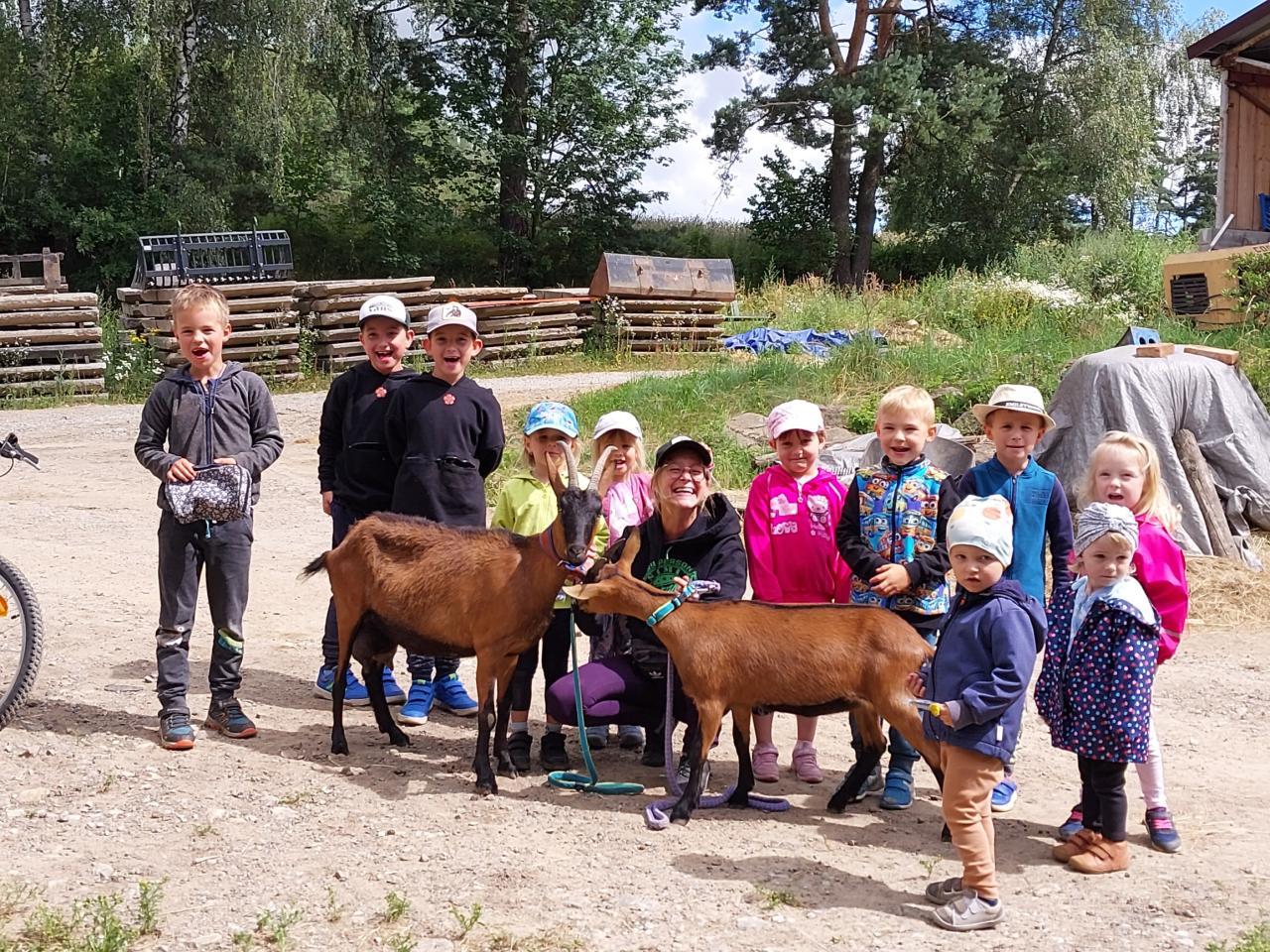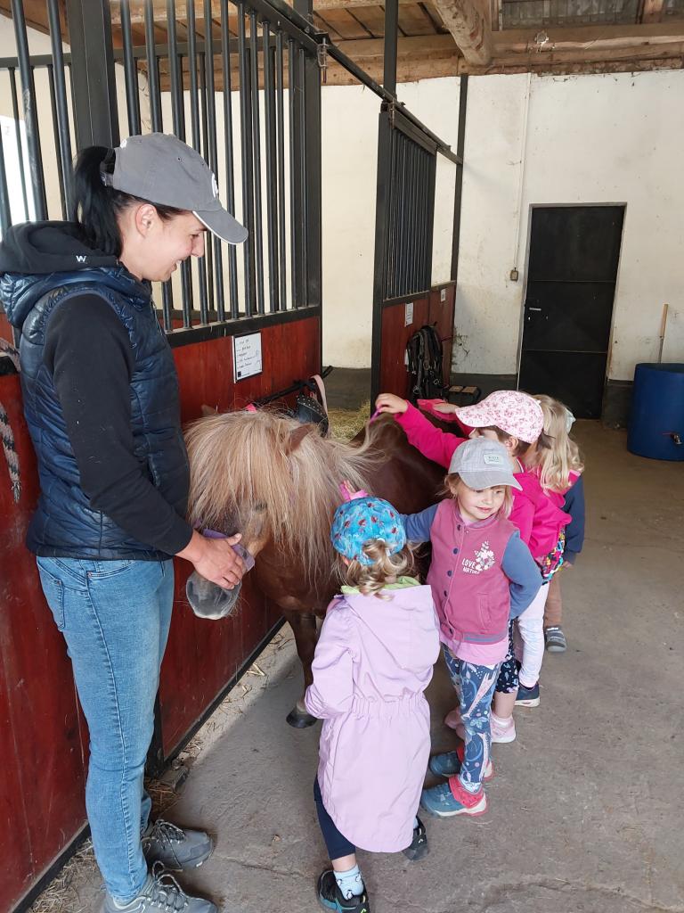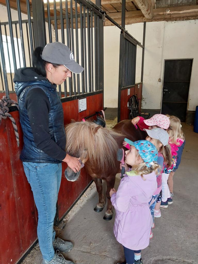 V úterý 2. 7. 2024 jsme byli na návštěvě na statku u Kohoutů. Děti si prohlédly kravičky, koně, kozy a dozvěděly se o nich hodně zajímavých věcí. Poníka si děti mohly vyhřebelcovat, svézt se na něm a mohly si vyzkoušet podojit kozu. Děkujeme, děti byly nadšené.
