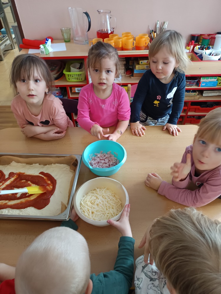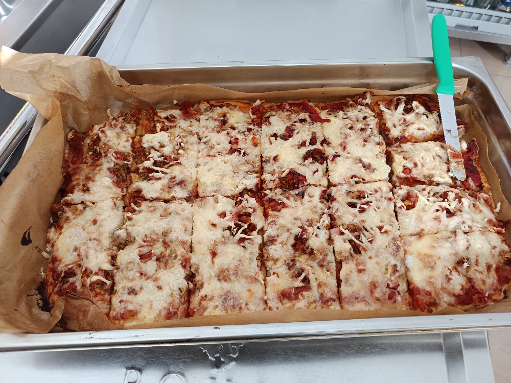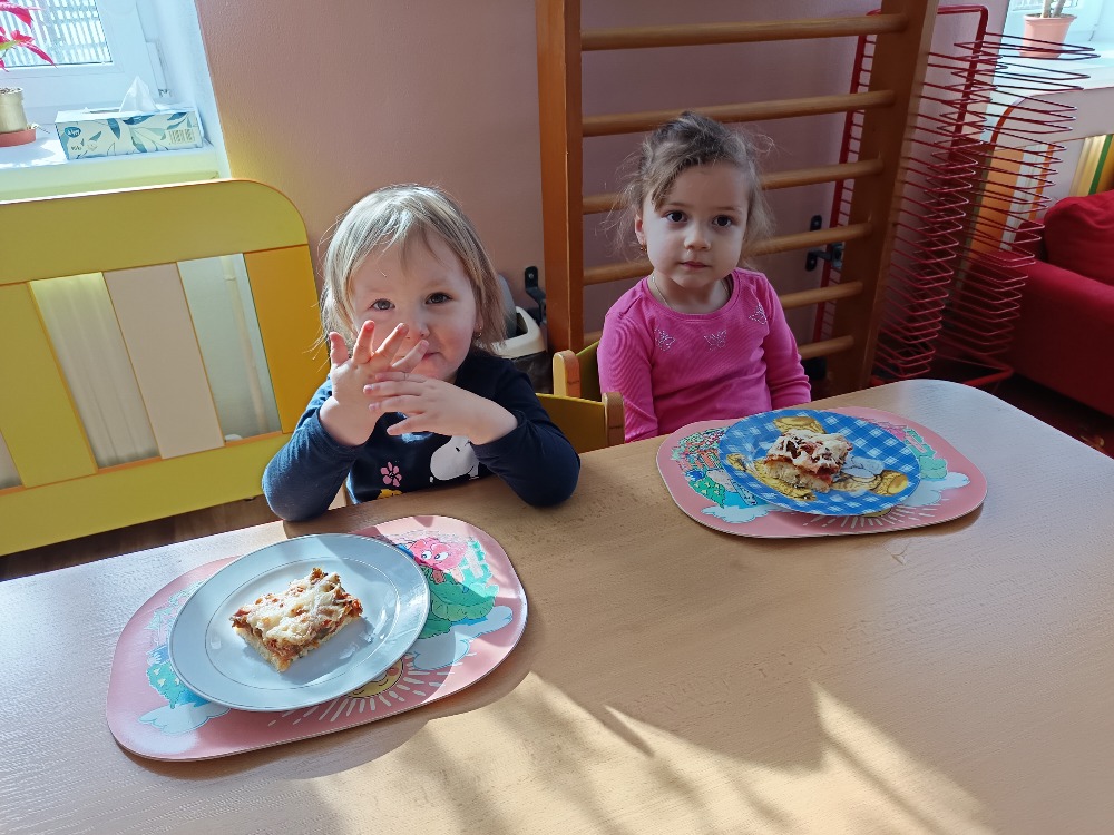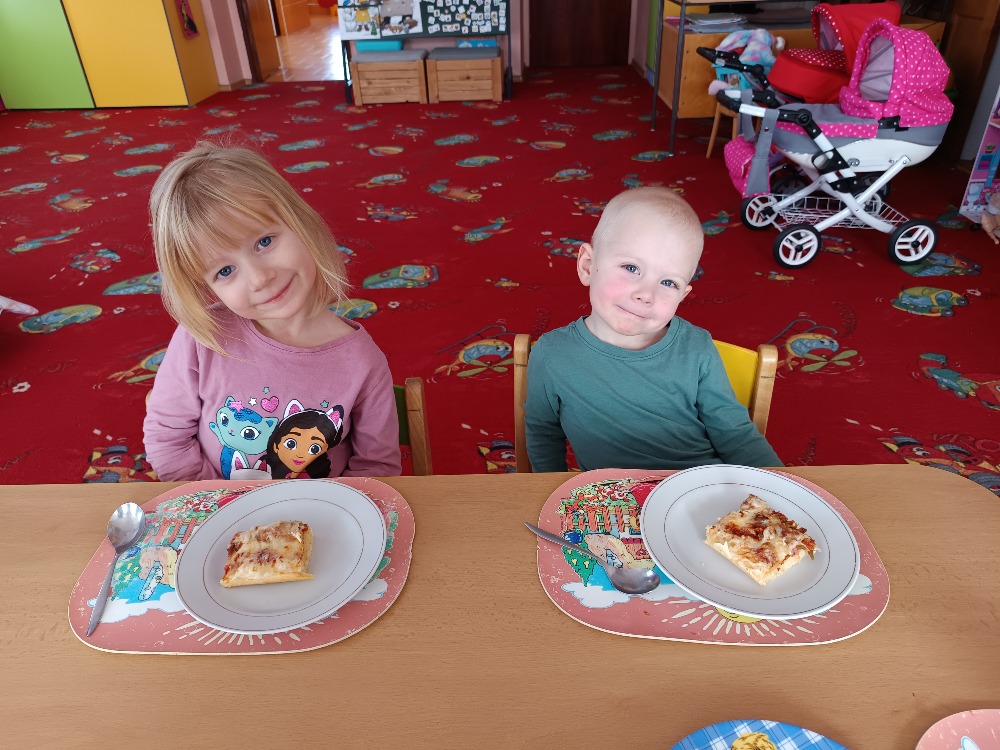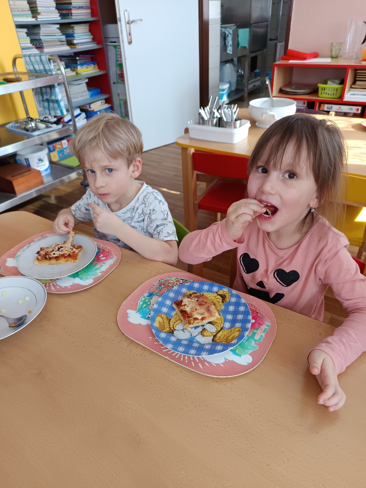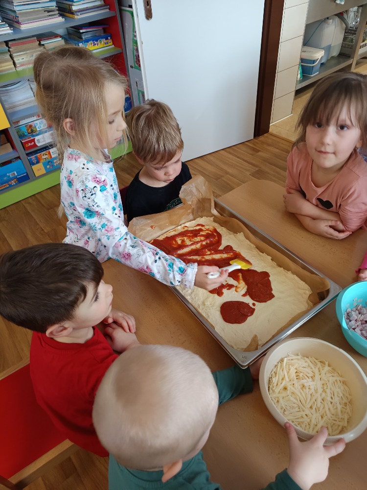 Dnes jsme si s dětmi uvařili k obědu pizzu Margheritu obohacenou navíc o šunku a sýr. Paní kuchařce jsme trochu ulehčili práci, děti byly šikovné a pizza byla výborná. Některým ale chutnala méně a tak jsme se dohodli, že příště zase zkusíme jinou variantu ;-)