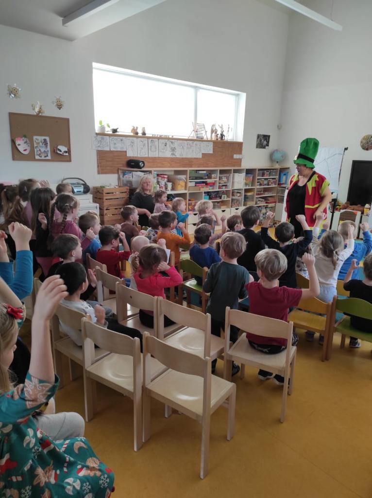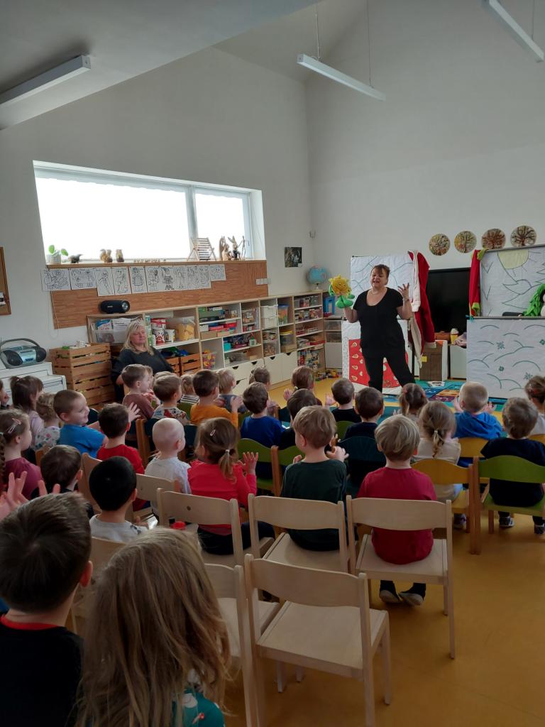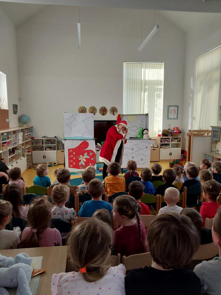 Ve středu 18. 2. 2026 jsme s dětmi jeli do Strmilova do školky na maňáskové divadlo na pohádku "O rukavičce."