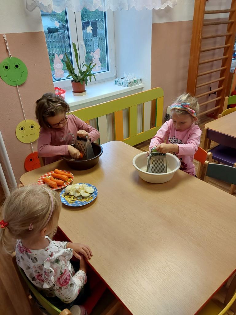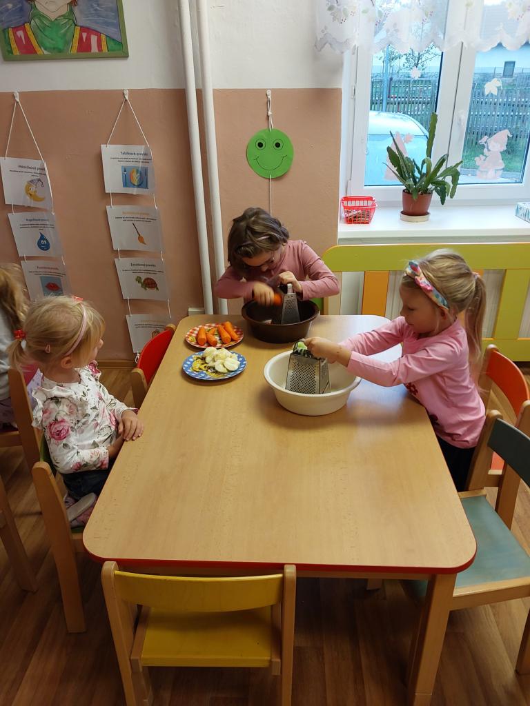 Tento týden máme ve školce téma: plody podzimu a tak si děti ve čtvrtek 2.10. udělaly k obědu mrkvovo-jablečný a okurkový salát samy. Jsou šikovné, oba saláty chutnaly skvěle!