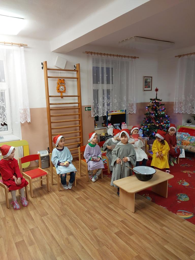 V úterý 17. 12. 2024 jsme měli ve školce vánoční besídku. Děti vystoupily s krátkým programem v podobě vánočního příběhu jak se vaří Vánoce, s tanečkem , básněmi a koledami.