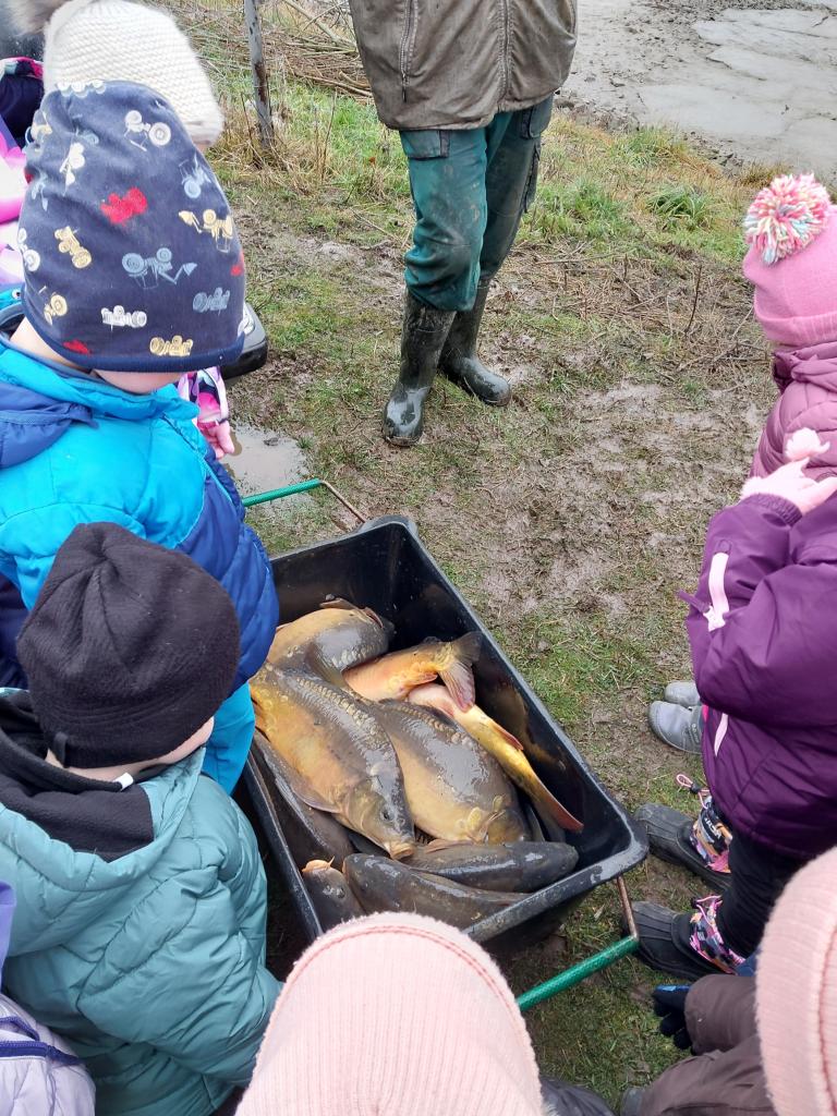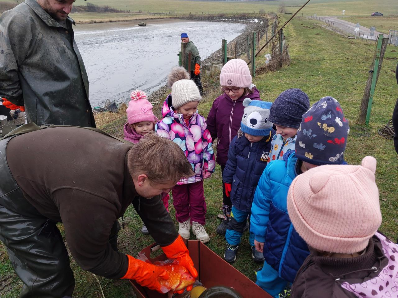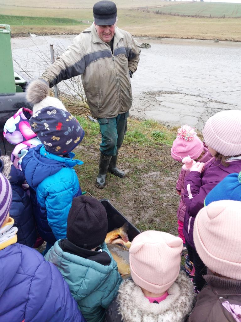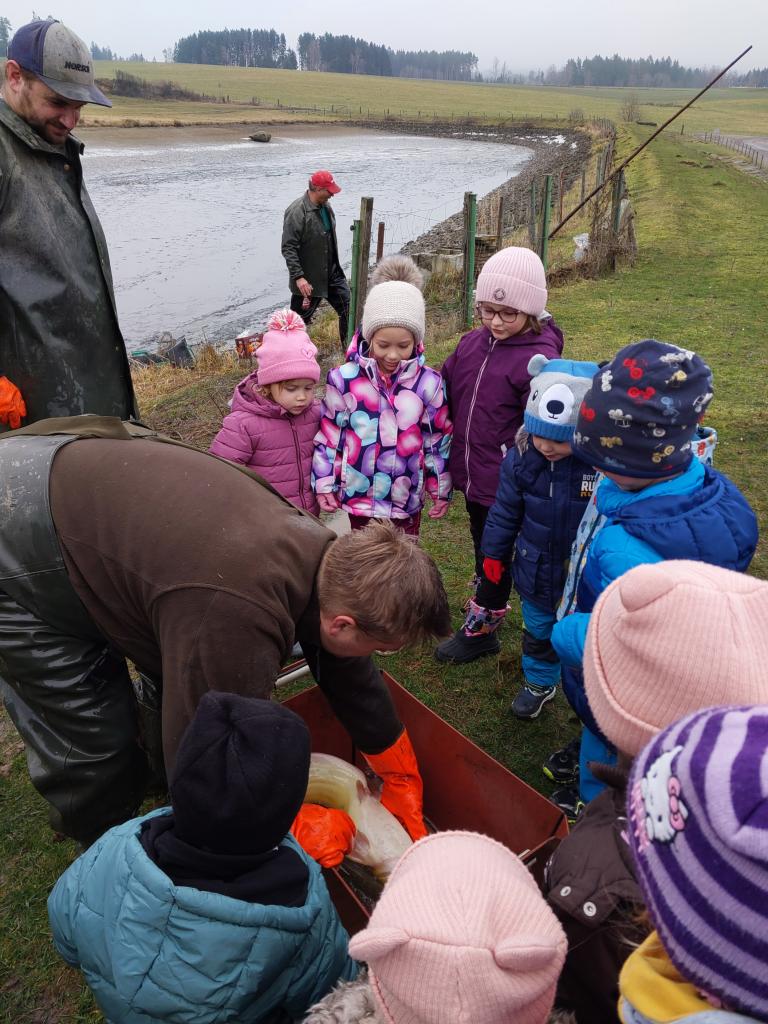 Ve čtvrtek 11. 12. 2025 jsme vyrazili na výlov rybníka - vánočních kaprů. Děti viděly menší kapry, velké a 10 kg kapra. Pan Svoboda dětem ukázal bílého sumce, štiku a zlatou rybku, která plní tři přání.