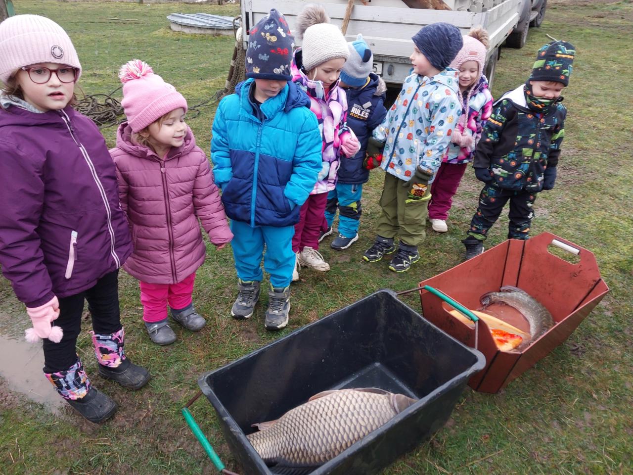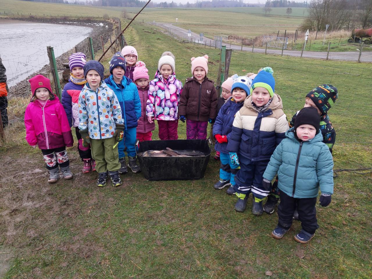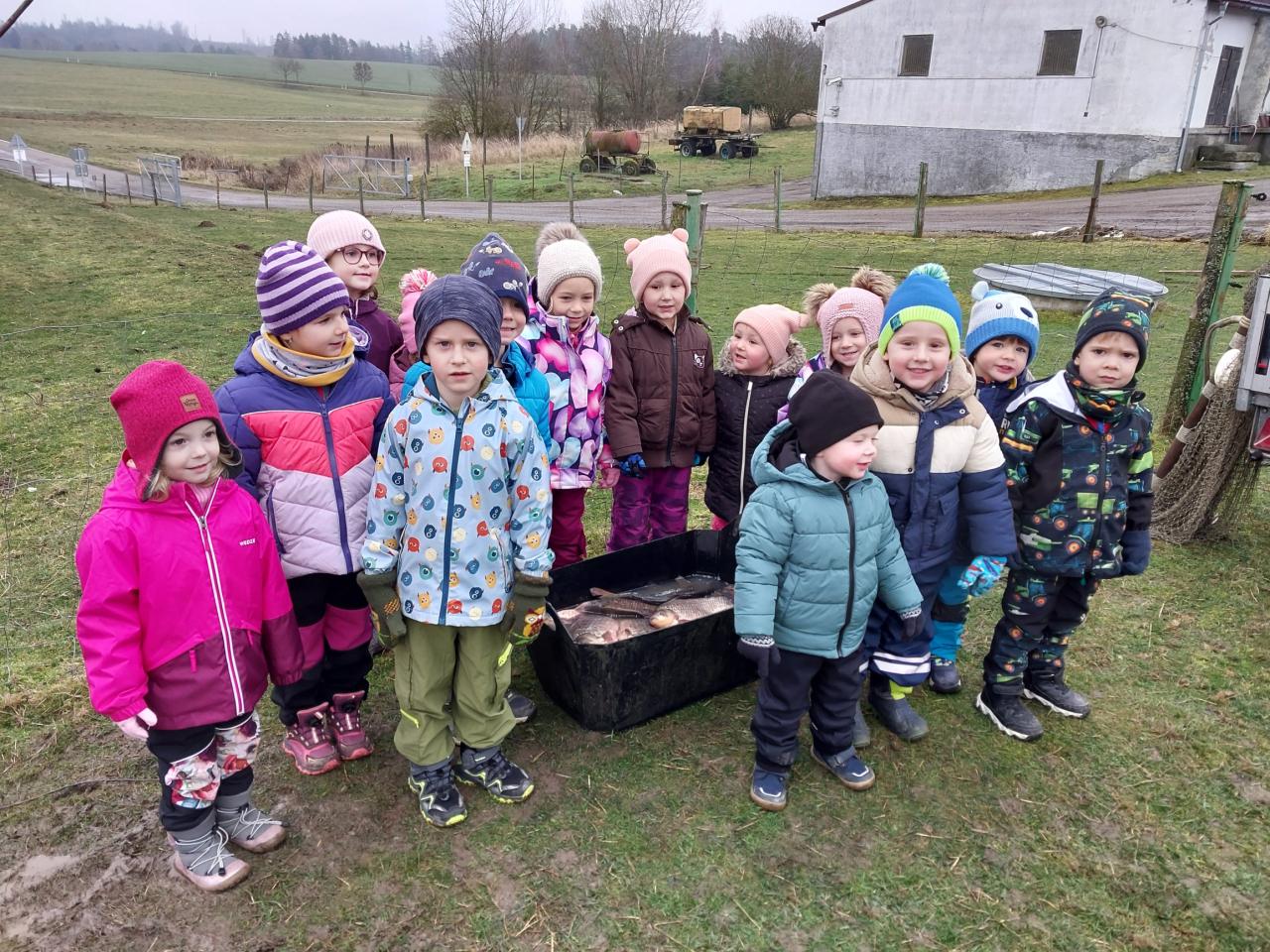 Ve čtvrtek 11. 12. 2025 jsme vyrazili na výlov rybníka - vánočních kaprů. Děti viděly menší kapry, velké a 10 kg kapra. Pan Svoboda dětem ukázal bílého sumce, štiku a zlatou rybku, která plní tři přání.