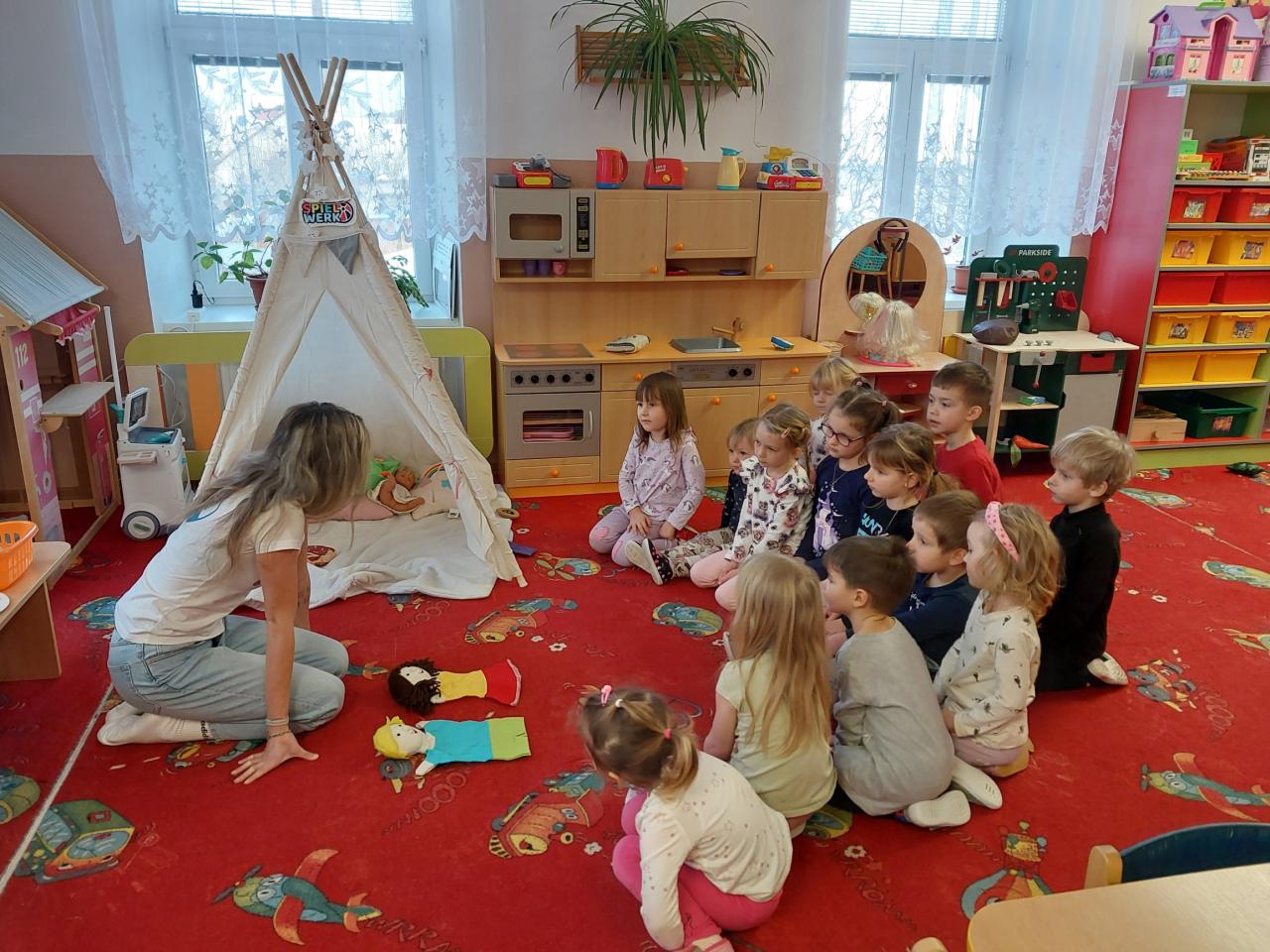 V pondělí 12. 1. 2026 nás navštívila lektorka z nadačního fondu "Zdravá pětka" s programem o zdraví. Maňásci Bertík a Bája zábavnou formou učili děti zdravým stravovacím návykům.