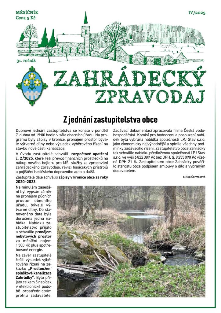 V dubnovém zpravodaji se v úvodním článku dozvíte, co projednávali zastupitelé, dále se věnujeme třeba informacím o odpadovém hospodářství. Nechybí pohled na dění v mateřské škole a návrat do minulosti. Přinášíme také podrobnosti o cyklistickém závodu, který povede naší obcí.